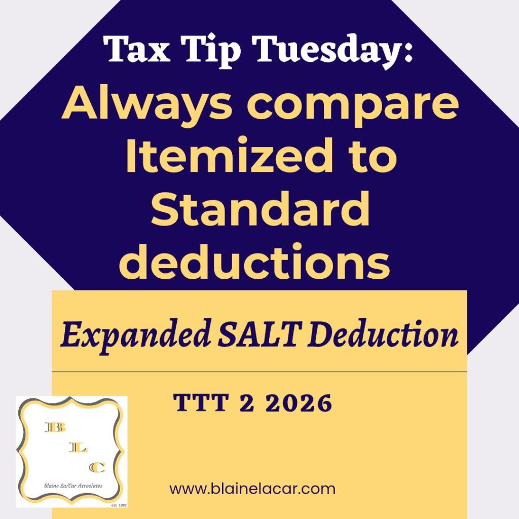 Tax Tip: Always compare itemized deductions to the standard deduction before filing. The better choice can change year to year.